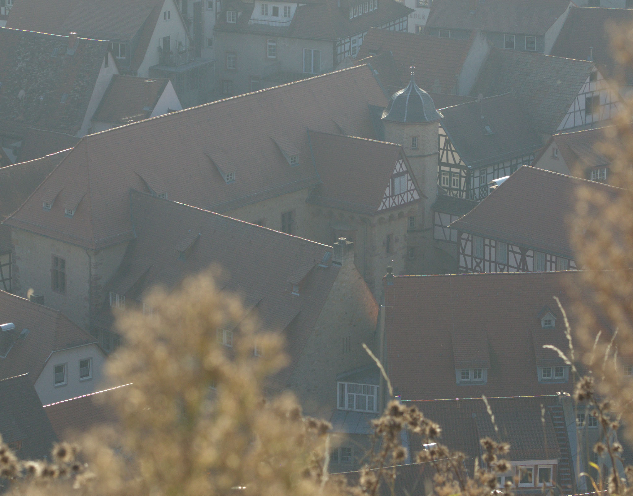 So ist das frühere Finanzamt heute ein Denkmal mit hohem Gebrauchswert, genau wie das Rathaus. Nachdem zunächst viel für die Erhaltung und Modernisierung im Inneren des Hauses getan wurde, sorgte eine Fassadenrenovierung dafür, das Haus auch äußerlich wieder in alter Pracht strahlen zu lassen. Bis zum Blitzschutzmast auf dem Dach mit seinen Vergoldungen. Wer die für ein Meisterstück hält, liegt trotzdem falsch. Gesellenstück wäre richtig, abgeliefert von einem Mitarbeiter der Firma Steuernagel und Lampert aus Groß-Bieberau. Und das zum Wohlgefallen sicher auch des Heppenheimer Stadtkämmerers, der in schlechten Zeiten wie diesen gegen etwas Gold an städtischen Gebäuden nichts einzuwenden hat – wenn es, wie hier, die Stadt nichts kostet.