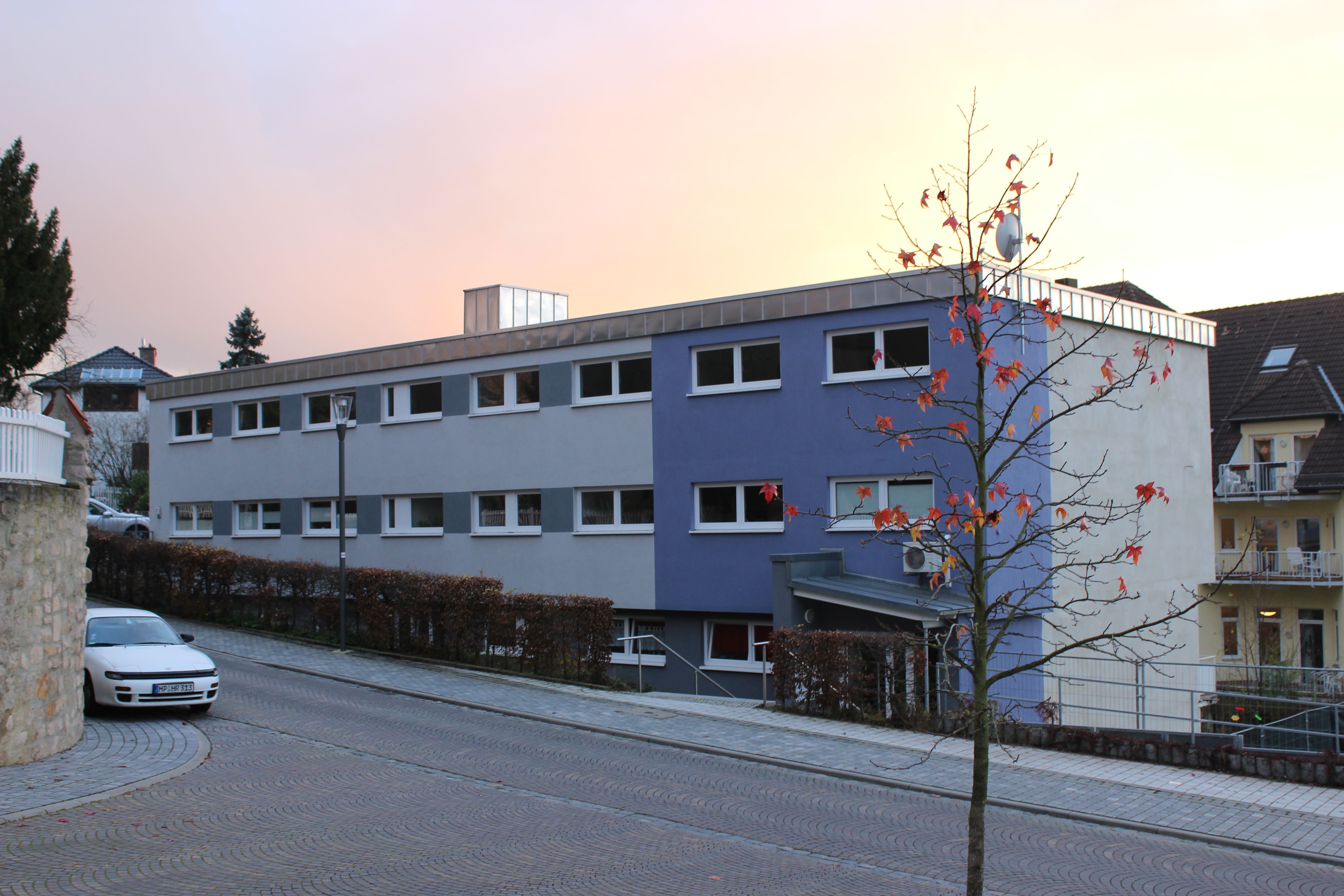 Das Gebäude am Hang des Maibergs entstand in den Jahren 1963/64 als Schwesternwohnheim für das direkt unterhalb, am Laudenbacher Tor, gelegene städtische Krankenhaus. Es war sicher kein architektonisch herausragendes Bauwerk, was damals vom Bauamt entworfen wurde, aber gerade in der Zurückhaltung lag seine gestalterische Qualität. Immerhin war es nicht ganz einfach, auf diesem Hanggrundstück ein Haus mit 42 Zimmern und insgesamt 4500 Kubikmeter umbautem Raum zu realisieren, ohne damit den Charakter des Anfang des 20. Jahrhunderts entstandenen Höhn’schen Villenviertels zu zerstören.